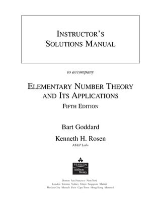 Read Online INSTRUCTOR SOLUTIONS MANUAL ELEMENTARY NUMBER THEORY ROSEN Doc